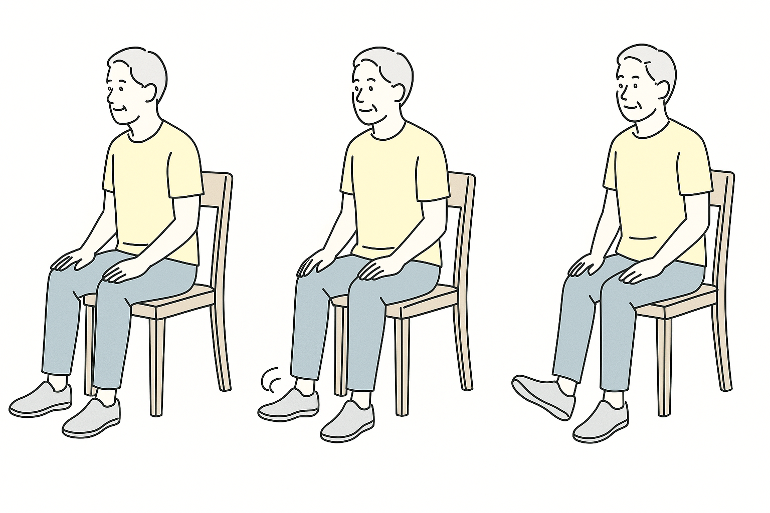 의자에 앉아서 할 수 있는 가벼운 무릎 펴기, 발목 돌리기 같은 동작으로 시작해보세요.