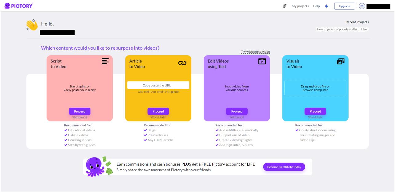 Pictory.Ai를 예시사진을 통해 조금 더 자세히 설명해 보자